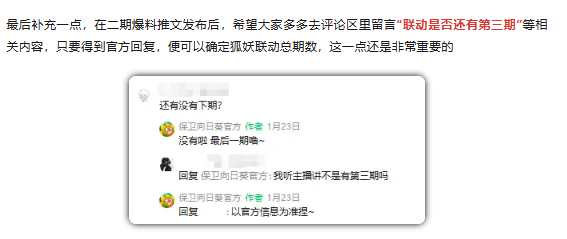 在本文的最后,小葵要再次给自己“洗白”一下。作为一名卑微的自媒体博主,小葵从来没有在未经证实的情况下确切的表明过“联动一定会有第三期”,一度让大家多拿资源,尽量在二期拉满联动幻练度,甚至上周末还在呼吁大家去官方推文留言,以确定联动总期数。但即便是这样,却依然平白无故挨了不少骂,实在是太冤枉了呀家人们!