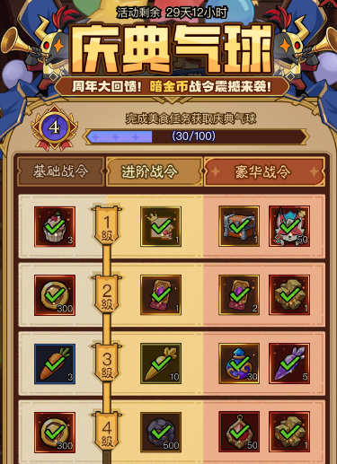 若想提高战令等级,就要不断完成各种美食任务,整体难度并不算高,完成后可以获得美味蛋糕,产出大量常规道具,其中就包含1w暗金币