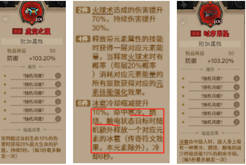 搭配思路:古神炎爆搭配,6魔龙相比于上期的电矛,交换了手和腰。由于炎爆不像电矛自带控制,搭配中的控制型技能也比较不稳定,因此护腰上替换成虚空之腹增加护盾。