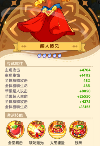 而在上个版本更新之后,专武又被赋予了一层更高的意义,它成为了开启超级杂交的重要条件:普通红植专武总星数需达8星,也就是两个红植各出5个专武(到手0星,升星需4个),共计10个专武