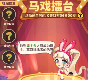 马戏擂台的玩法主要有两个,一是当擂主,二是抽保底