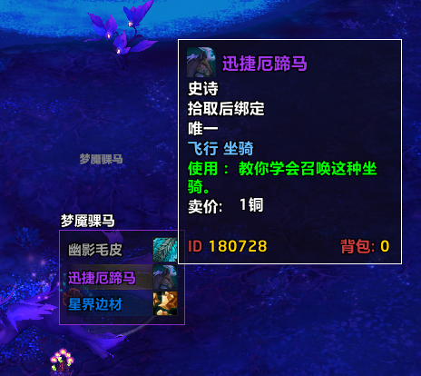最后,来我们来到冬日林谷右半边的道路上,使用捕梦网,进入梦境位面在这片区域有一只稀有怪【梦魇骒马】,击杀后就可以获得该坐骑啦~