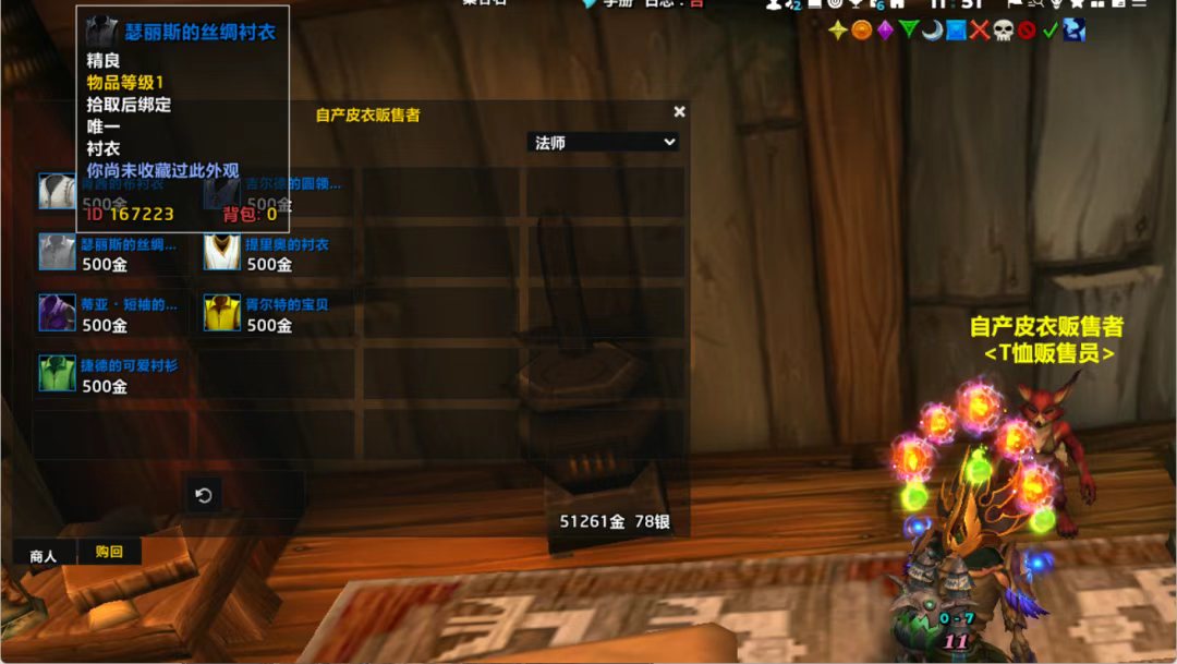 - 想买的宝子们,就去艾泽拉斯东部王国荆棘谷,在荆棘谷海角藏宝海湾,坐标(42,73)处的二楼,找 NPC T恤贩售员 500金直接购买!