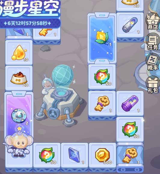 星海寻宝:需要消耗星海寻宝币,一圈保底可得2个,约等于600钻石一个,多出的概率只有5%