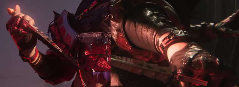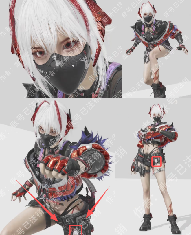 数据飞刀进行了改模,变成了一种类似棱锥的外观。手上则是穿着红色露指手套,还有皮革护臂和手表,持枪状态下应该都能看到。