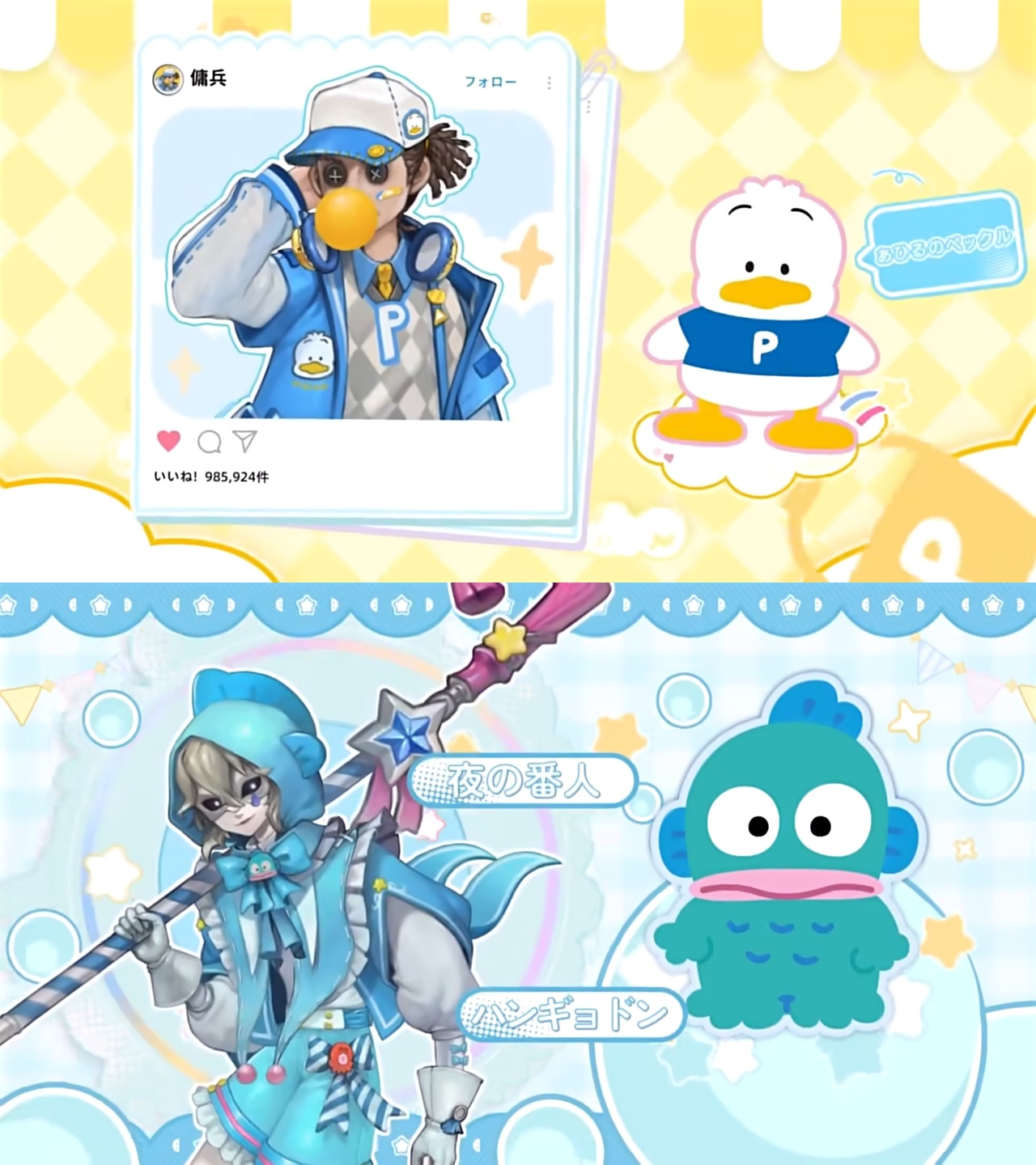 因为之前三丽鸥的联动皮肤形象,都是从《第五人格》咖啡馆与三丽鸥合作推出的周边谷子中挑选的。而恰好,佣兵和守夜人在这批谷子裡,都有非常明确的对应形象(如下图)。所以,综合来看,小五觉得明年年初很可能会先推出三丽鸥联动第三弹,其中就有这两位角色的新皮肤啦~