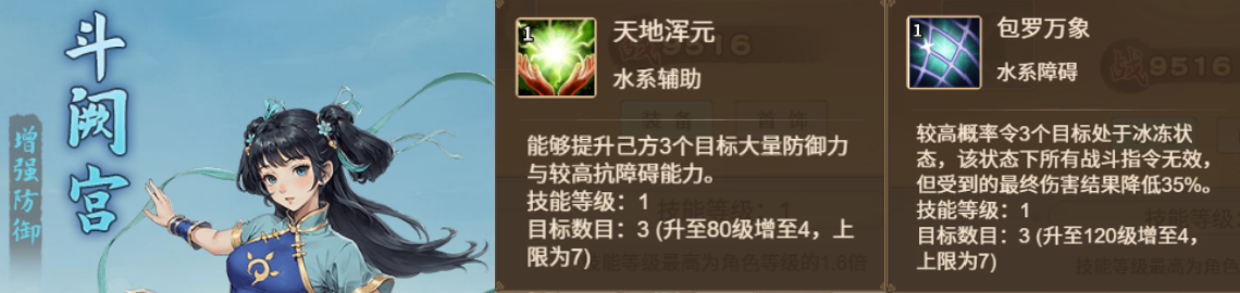 水系角色的辅助技能为增加防御和抗障碍,障碍是冰冻,也就是孟姑+凝霜仙姬。防御抗障的辅助效果很强,但冰冻在没有凝霜仙姬的情况下,前期效果一般,因而水系的发力期主要在后期,适合后面再转职。