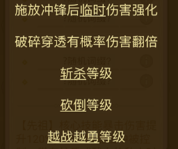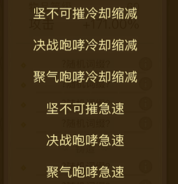 第4词条首选奋勇冲击冷却;次选跃空击冷却(打法师)、踏平冷却(强劲、打首领)