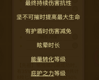 5~6词条首选有护盾时伤害减免、最终持续伤害抗性、能量转化;次选庇护之力