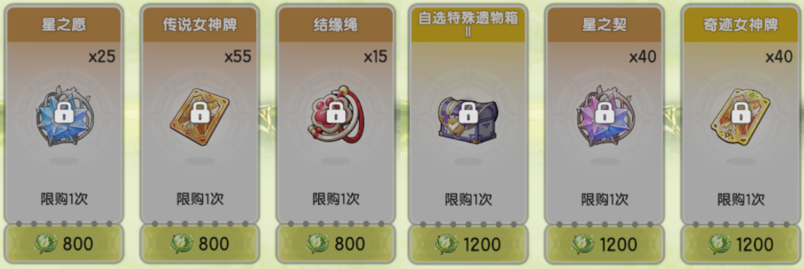 最优先换的一定是奇迹女神牌!剩下的东西中,新进游戏的宝子可以先换出凯尔斯,换出来后再按照粉球>结缘绳>蓝女神牌>蓝球>橙色料理的顺序兑换,在买料理之前,别忘了先确认一下吃过多少个,一般超过10个小乐就不建议再换了~