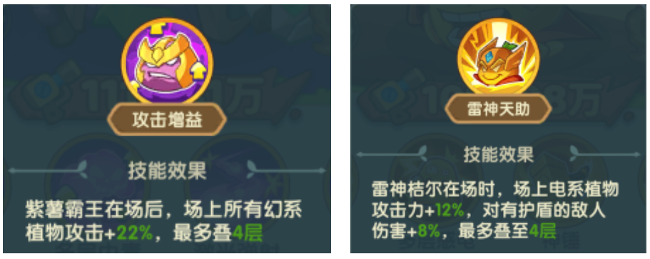 这里有个小细节:辅助需上4个才能拉满buff,其中并不包括杂交,当buff生效时,场上植物会冒出金光,大家可以根据这一点去判断要不要补辅助
