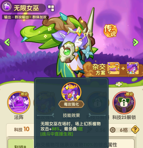 随着金卡植物等级升上来之后,洋葱和菠萝就会退居3线,曼陀罗+冬瓜成为核心双C。当开启杂交后,水幻玩家便可以提高无限女巫和波塞冬瓜的科技等级,达到5级即可停手
