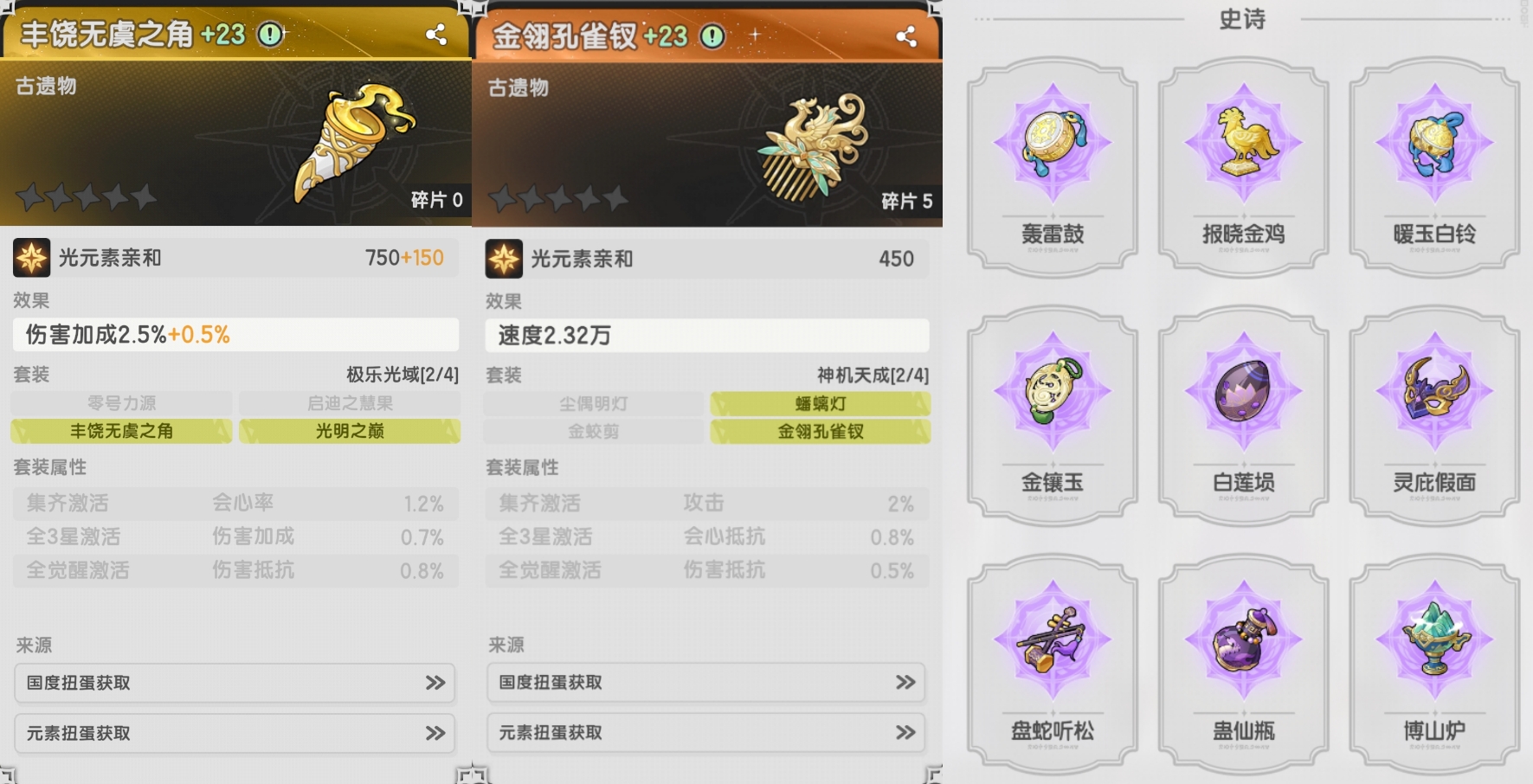 ②每个国度,只有首个遗物池的部分遗物可以通过探寻获得,也就是说龙二、羽二、羽三只能靠抽!