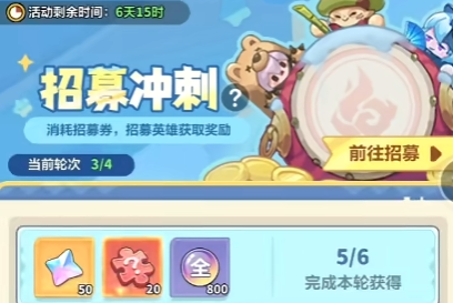 实则不然,在招募冲刺的中后期里,通常会推出一些同样需要招募券的活动玩法,例如水轮、航海、金沙、英雄试炼,届时若花光了招募券,则只能干瞪眼。因此本兔建议大家在冲刺最后一天梭哈,一定不会出错!