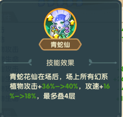 不推荐大家升青蛇,因为专武仅能加强青蛇的辅助能力。作为辅助植物,青蛇自身数值肯定是远不如白蛇的,且上有海藻,未来还有幻SP+,这意味着青蛇的上场空间将会越来越少,拿专武的性价比并不高