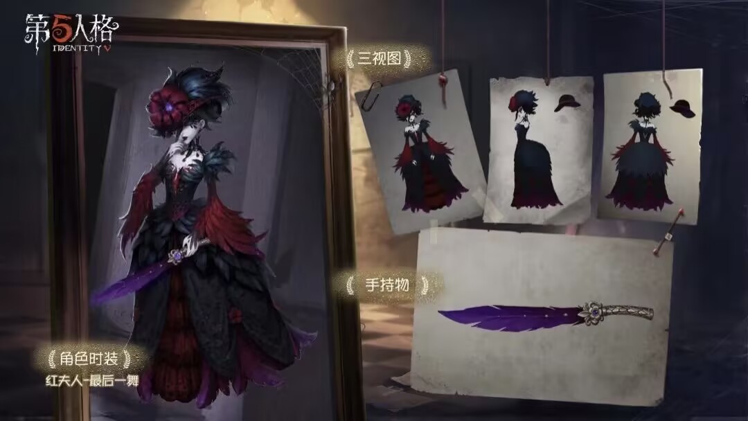 咩瑞的这款皮肤非常冷艳,以森林女王为主题,浓黑的羽毛、冷青的肤色、鲜红的血滴项链都是她遭受恶意恶行后“黑化”诞生的元素,不愧是庄园美屠之一,红夫人的颜值从来都是毋庸置疑!