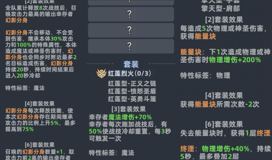内圈套装:红莲3件套,能让幸存者高概率释放两次战技!