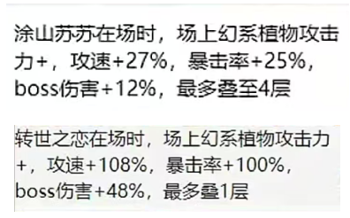 再看技能,联动幻卡buff量对标双熊,其中苏苏是辅助,月初是主C。话虽如此,但由于苏苏是4格辅助,所以从某种程度上来说玩起来会比较卡手,这从一定程度上提高了海藻的含金量。至于主C,那么未来的幻队毋庸置疑会给到联动杂交“转世之恋”,无论是杂交蛇还是白棉都得往后排排了