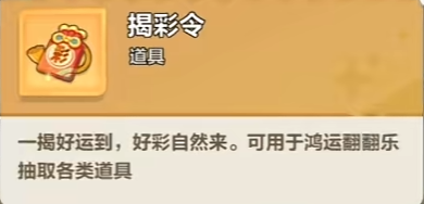 除了武器外,战令中最重要的奖励便是“揭彩令”,用于鸿运翻翻乐,通过描述来看是以翻牌子为形式的类抽奖活动。由于该玩法暂未上线,因此到底有哪些豪礼大家只能自行脑补啦~