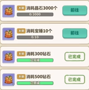 先说任务,分为每日任务+本期任务,包含签到、打合作/竞技场、消耗钻石+锤子+体力等常见玩法。值得一提的是,本次活动所需的道具数量整体较少,大家无需担心太多,不必特别囤资源~