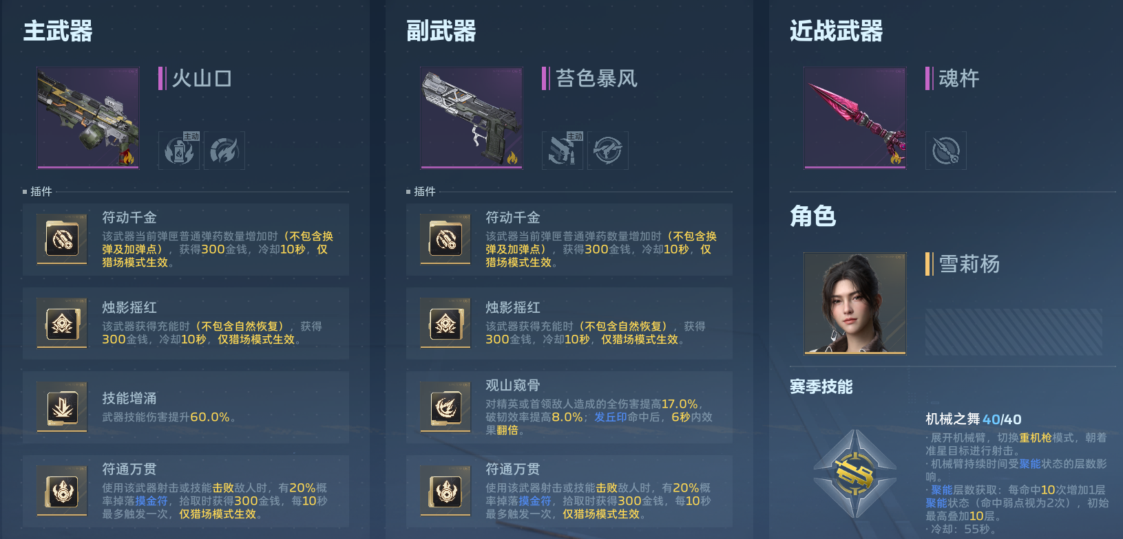 苔色风暴,插件方面1、2、4号和主武器保持一致,将3号插件换成观山窥骨~